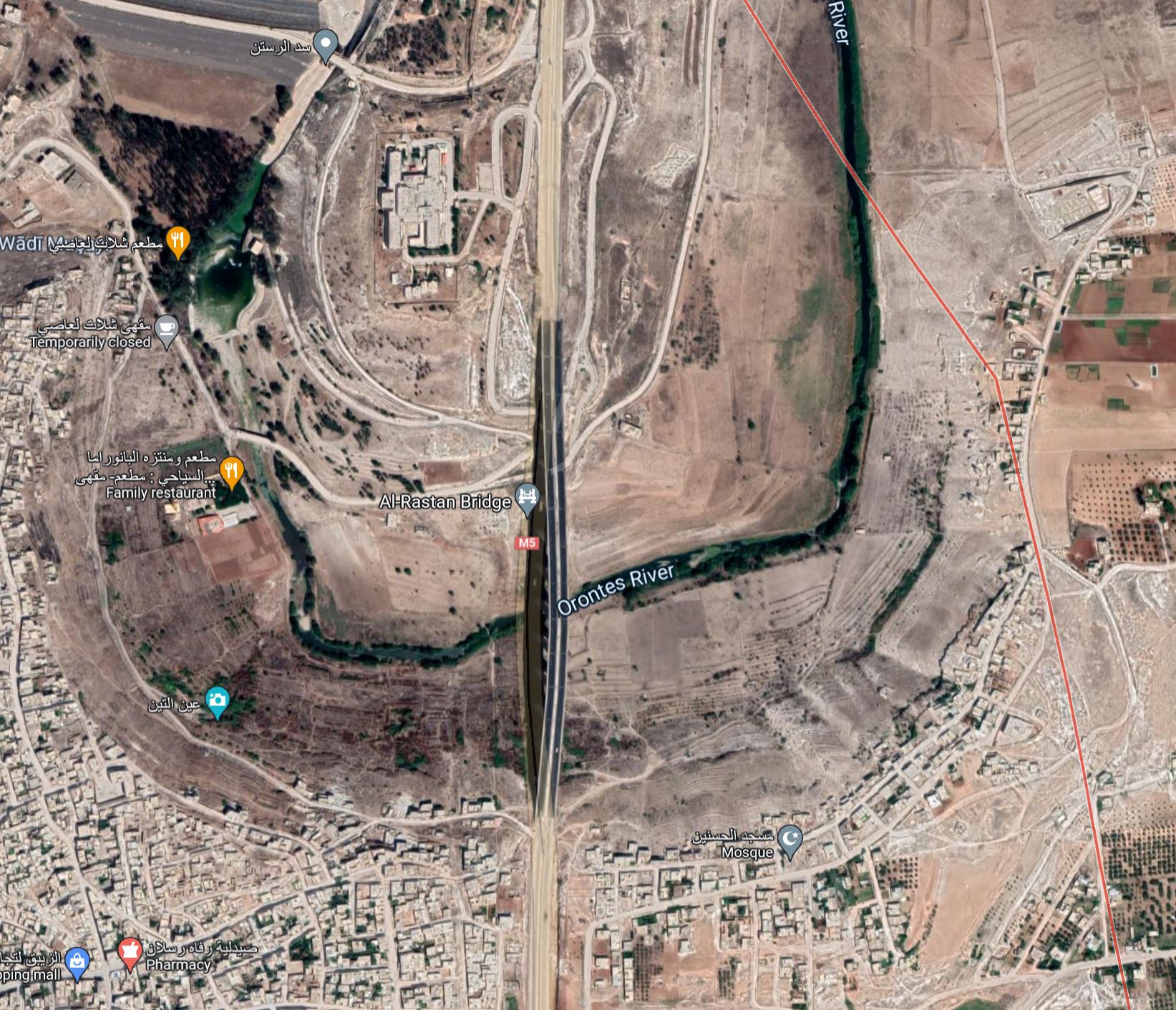This location is a sizable east-west valley with the Orentes river in the middle and small bridge across it. Just beyond the south side, up above the hill lay a force about half the size (10,000) of the crusaders in wait for the Holy Crusade (25,000) to come from the North. The Syrian army (led by Duqaq) could make a decisive attack downhill if the Crusaders forded the river at this bridge.